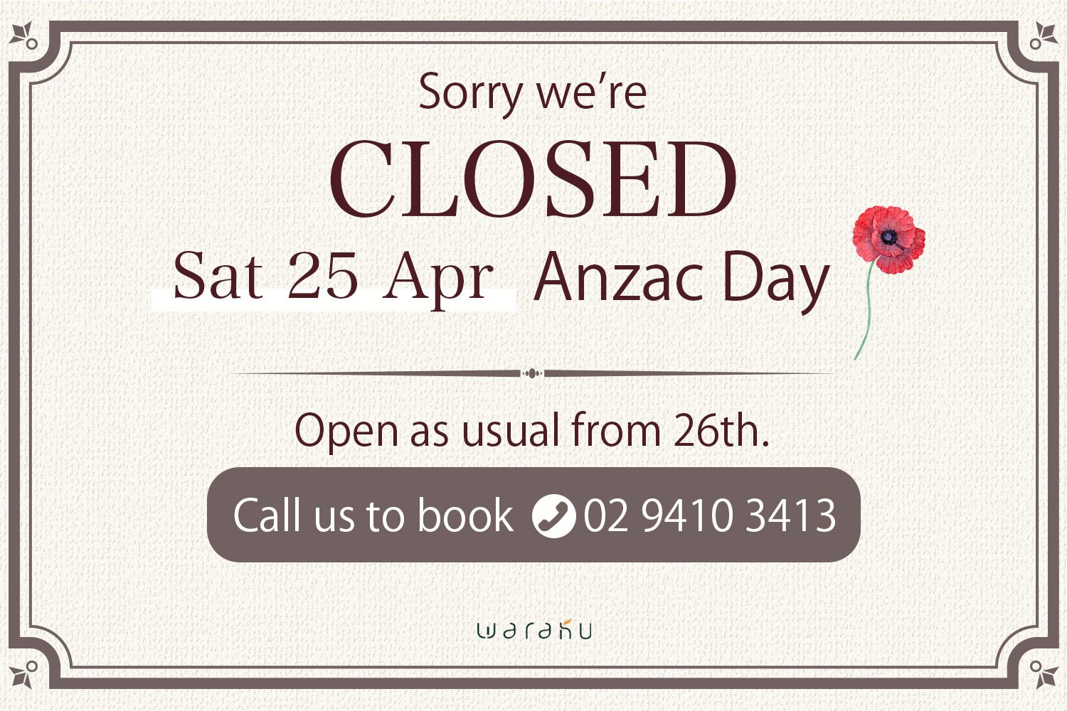 -Anzac Day open hour-