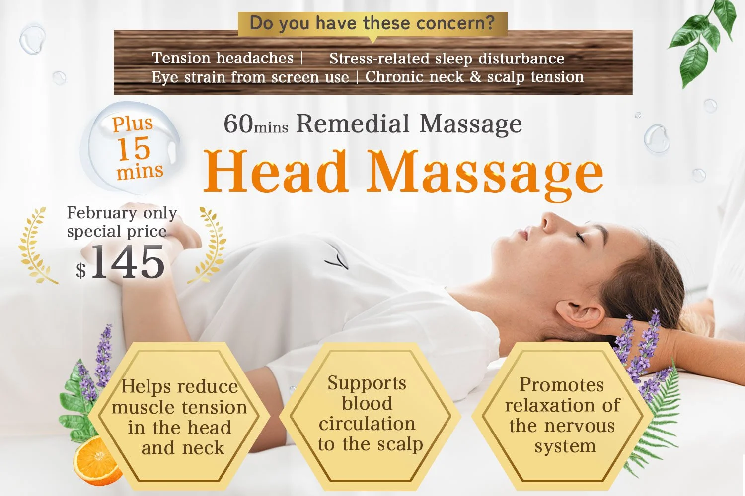 60mins remedial Massage + 15mins Head massage $145
